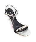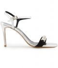 Agneau métallisé argent / chèvre velours noir / strass cristal